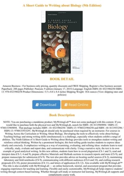 Read Online A Short Guide to Writing About Biology Epub By Click Button. A Short Guide to Writing About Biology it’s easy to recommend a new book category such as Novel, journal, comic, magazin, ect. You see it and you just know that the designer is also an author and understands the challenges involved with having a good book. You can easy klick for detailing book and you can read it online, even you can download it